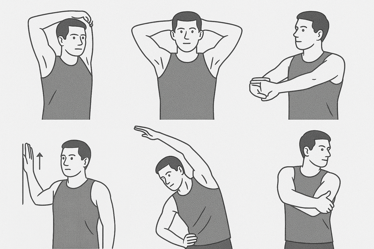 (Paired with illustration: Person stretching shoulder across the chest.)